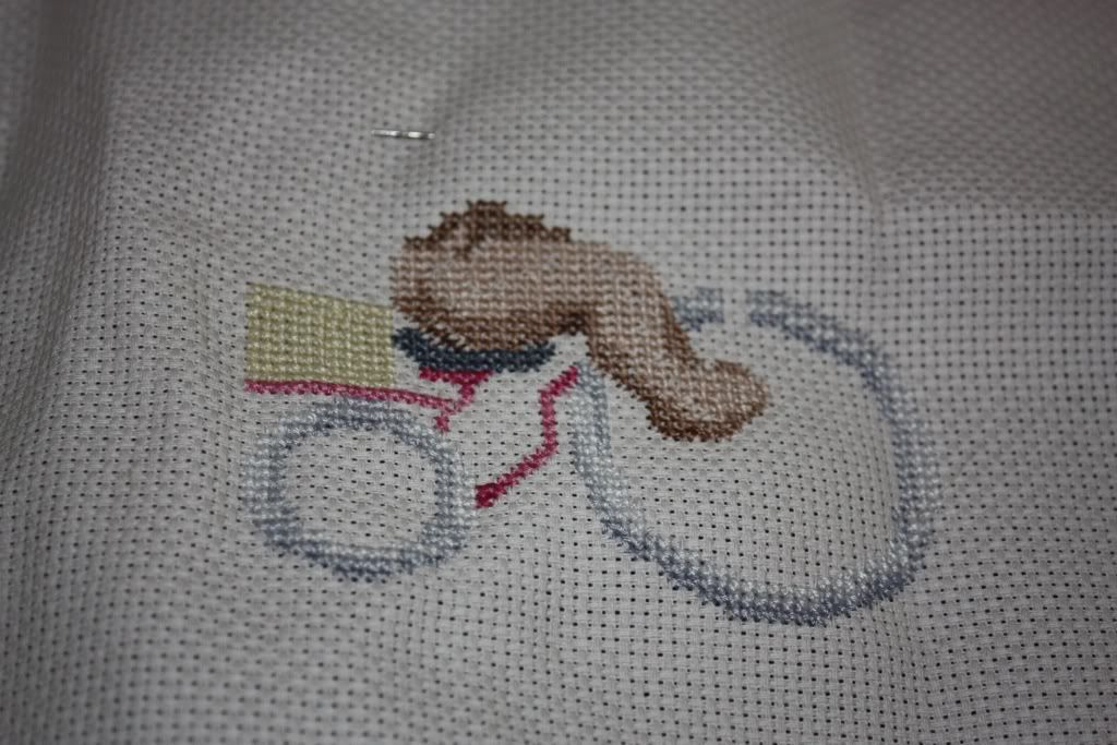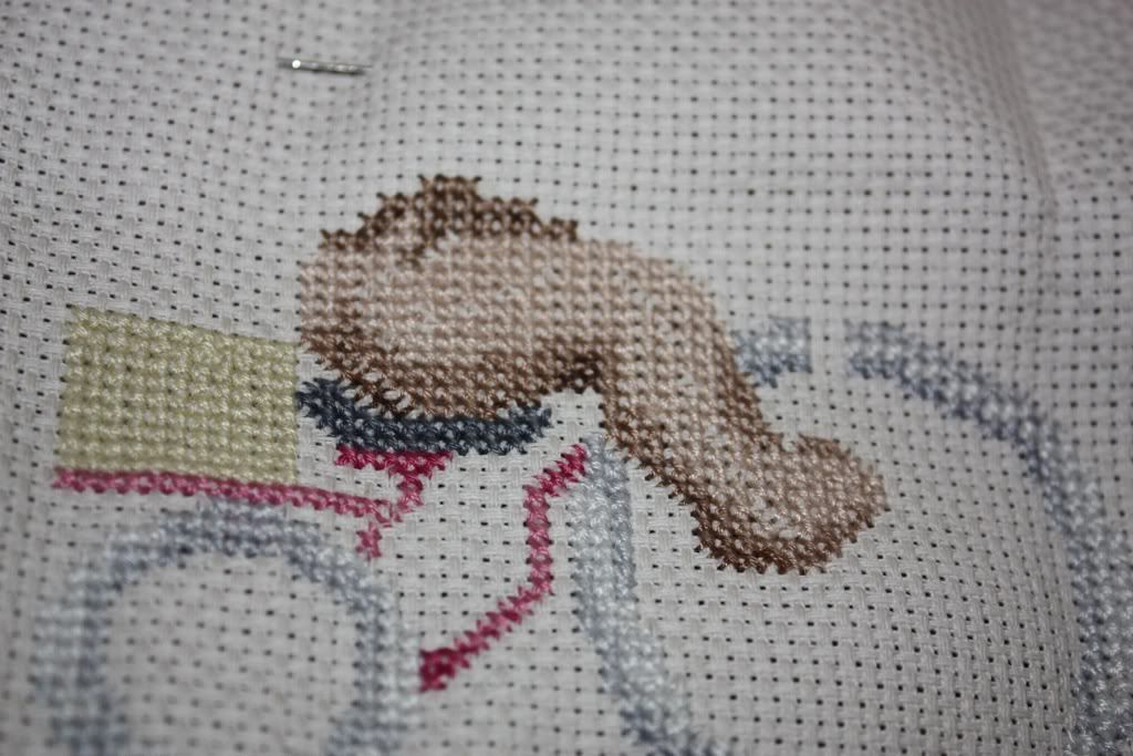 Sorry about the lack of update pictures. My internet went down so had to wait for internet provider. I just have some green leaves to stitch and backstitch up above the yellow box at the back of the bike and some french knots to do in that area too. I need to learn how to do french knots first before I can finish this one completely. Here's the pics...