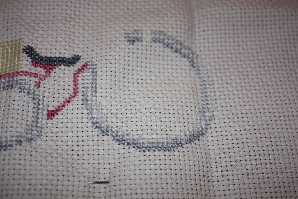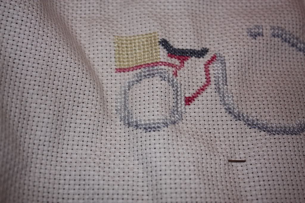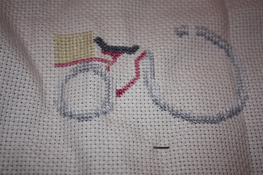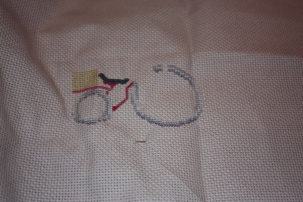 Sorry about the lack of update pictures. My internet went down so had to wait for internet provider. I just have some green leaves to stitch and backstitch up above the yellow box at the back of the bike and some french knots to do in that area too. I need to learn how to do french knots first before I can finish this one completely. Here's the pics...